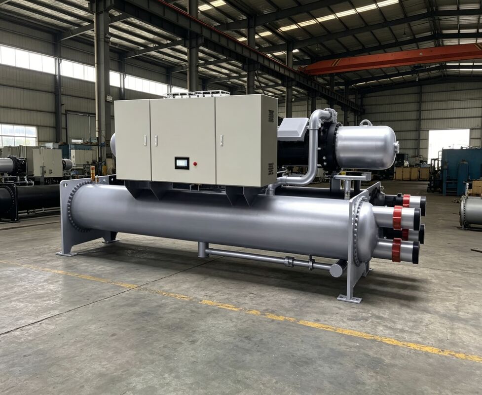 Il refrigeratore a vite raffreddato ad acqua è dotato di tecnologia avanzata a compressore a vite semi-ermetico con profili del rotore ottimizzati e tubi di scambio termico migliorati. Certificata secondo gli standard 500/590 (I-P) e 551/591 (SI), questa unità offre eccezionale efficienza e affidabilità per grandi applicazioni di raffreddamento commerciali e industriali.